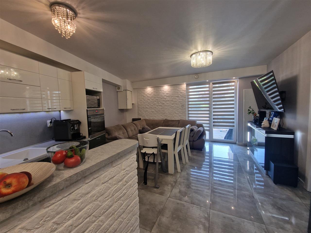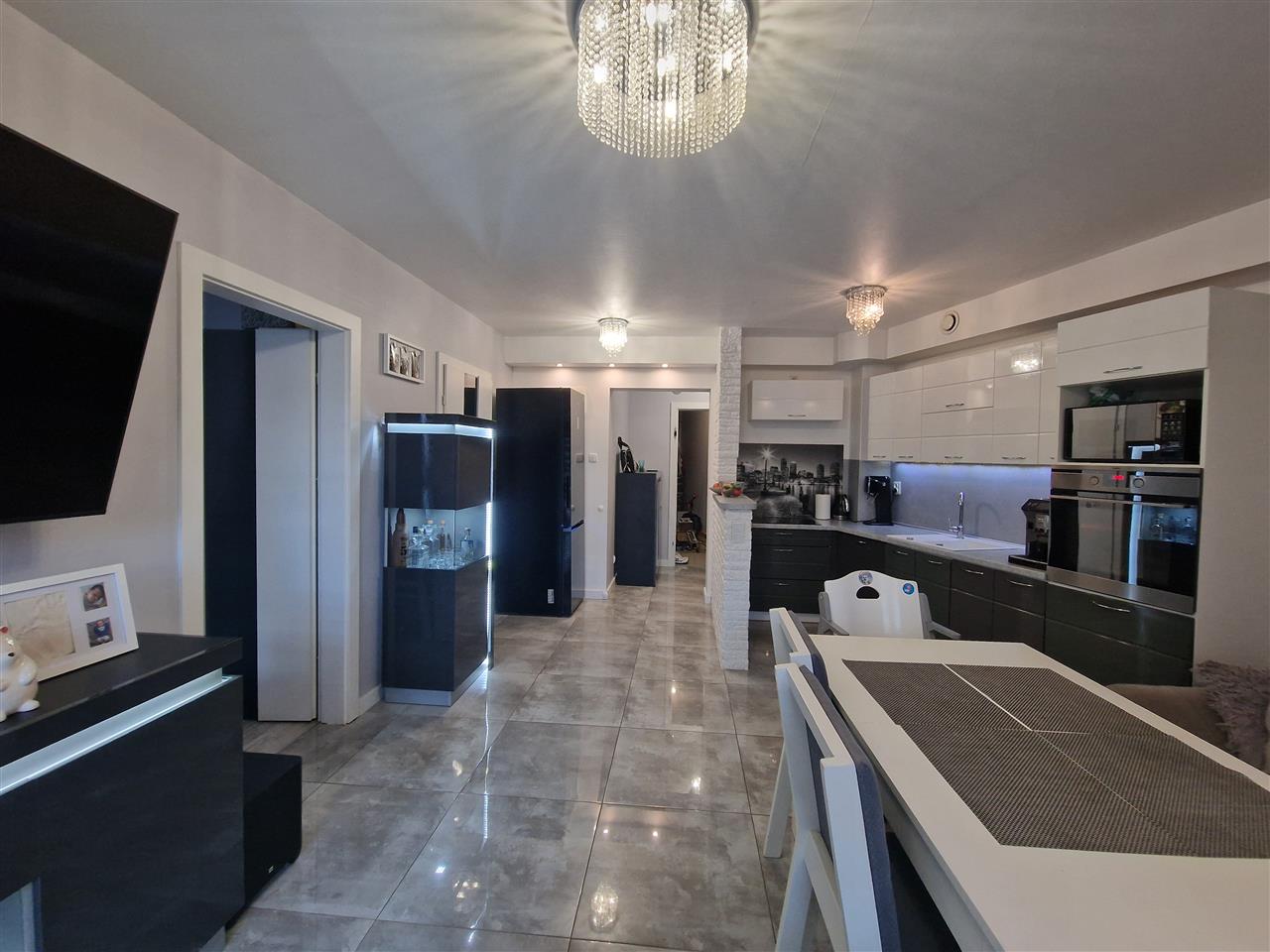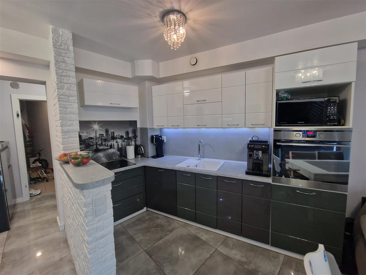 Przestronny salon połączony z aneksem kuchennym z pełnym wyposażeniem AGD (kuchenka indukcyjna, okap, piekarnik) z którego mamy wyjście na przestronny taras (36,13m2).Teren ogrodzony, całkowicie odizolowany od ulicy połączony z placem zabaw. Łazienka z kabiną prysznicową oraz wc, garderoba oraz sypialnia. Do mieszkania przynależy również miejsce postojowe zewnętrzne dodatkowo płatne 20.000zł z bramą na pilota.