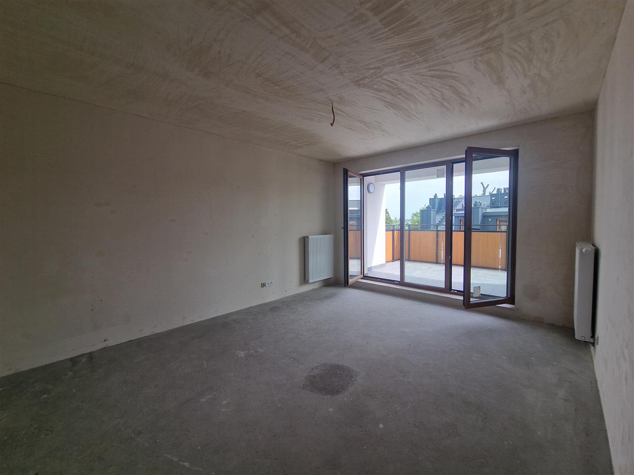 Apartament w budynku z windą na III piętrze w stanie deweloperskim, składający się z salonu połączonego aneksem kuchennym z wyjściem na przestronny taras, sypialni, przedpokoju oraz łazienki, jednostronny i bardzo słoneczny.