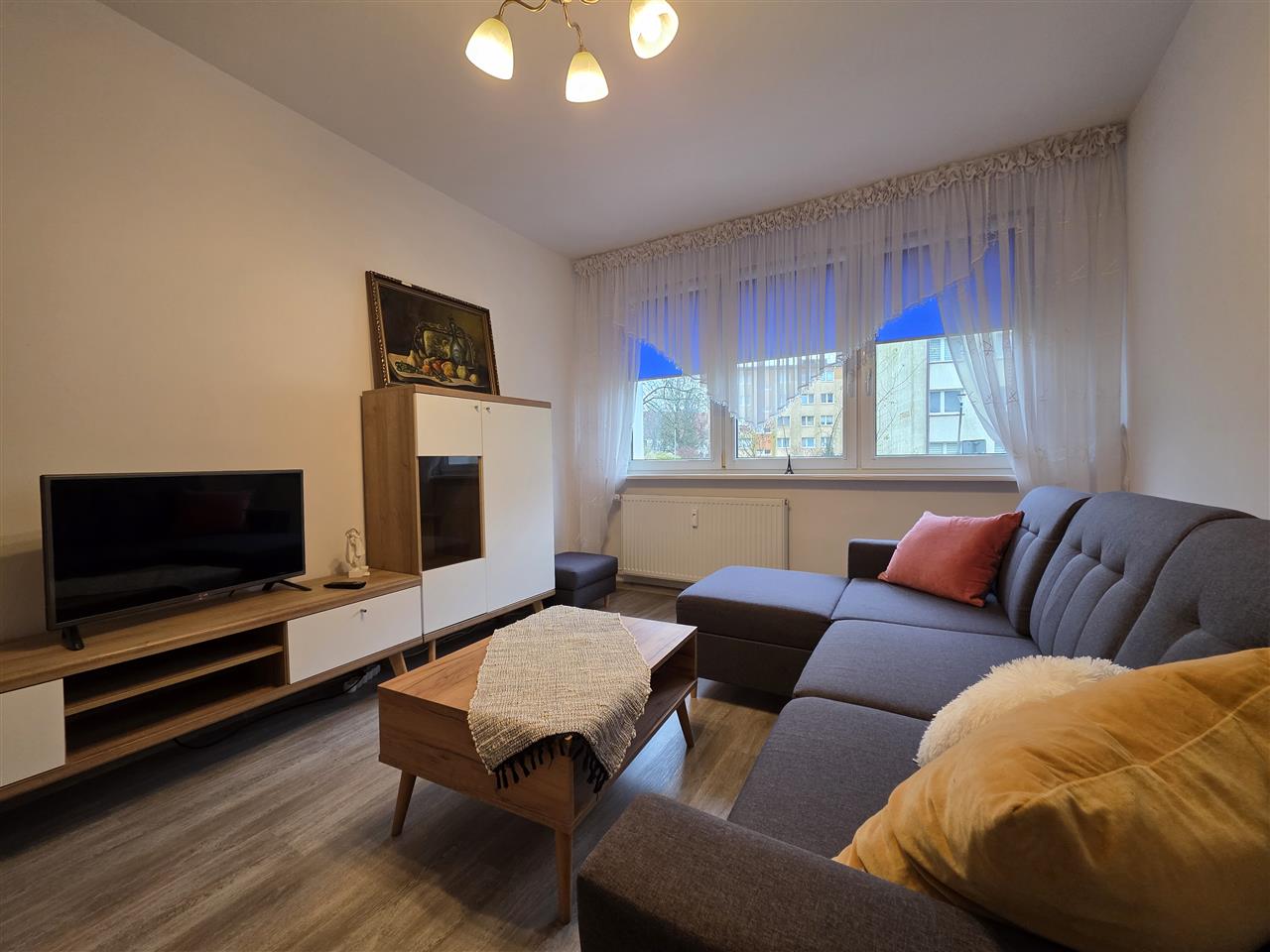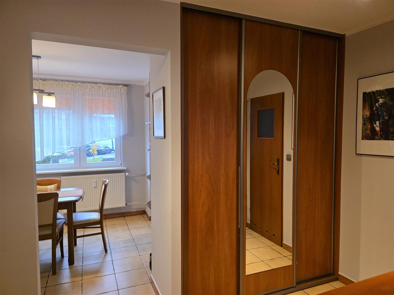 Nieruchomość składa się z dużego pokoju, sypialni oraz oddzielnej kuchni połączonej z jadalnią. Dwustronne i bardzo słoneczne. Okna plastikowe. Kuchnia zabudowana szafkami zrobionymi pod wymiar, niezwykle funkcjonalna wraz ze sprzętem AGD. Na podłodze w pokojach położone panele, przedpokój , kuchnia oraz łazienka terakota. Łazienka z kabiną prysznicową oraz wc. Do mieszkania przynależy piwnica około 4m2.