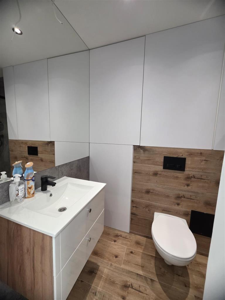 Na podłodze położone panele i terakota, na ścianach gładź. Mieszkanie jest bardzo słoneczne i ciepłe. Okna plastikowe.