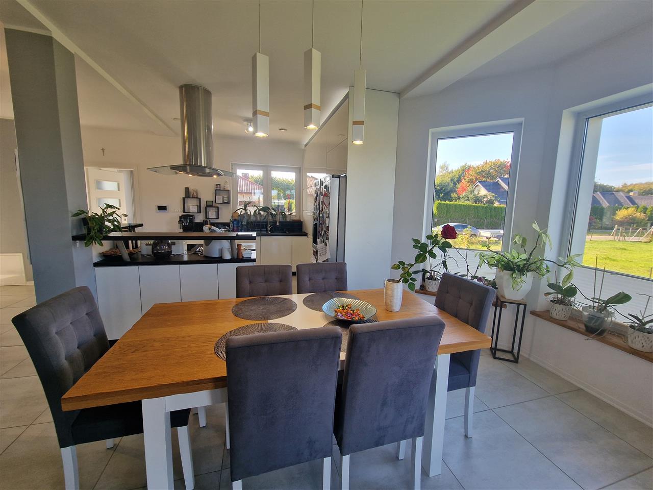 * salon (25m2) z kominkiem oraz wyjściem do ogrodu, przestrzennie połączony z jadalnią (12,35m2) oraz otwartą kuchnią z wyspą (8,56) z pełnym sprzętem AGD ( w zeszłym roku zakupiona nowa lodówka i zmywarka)