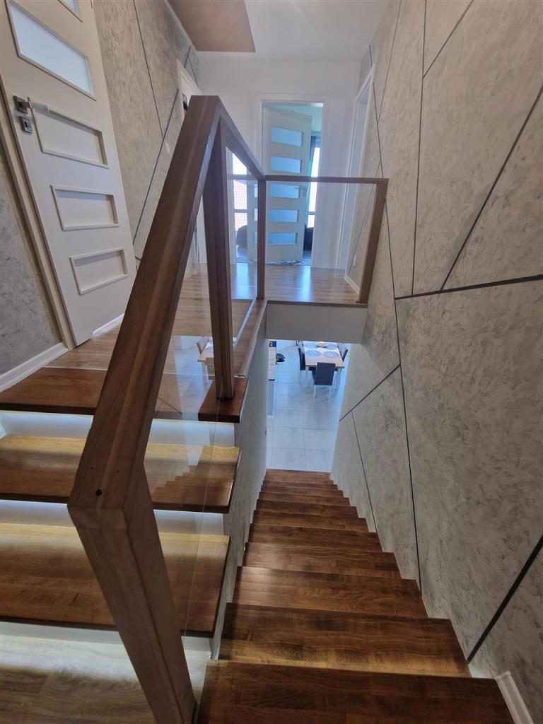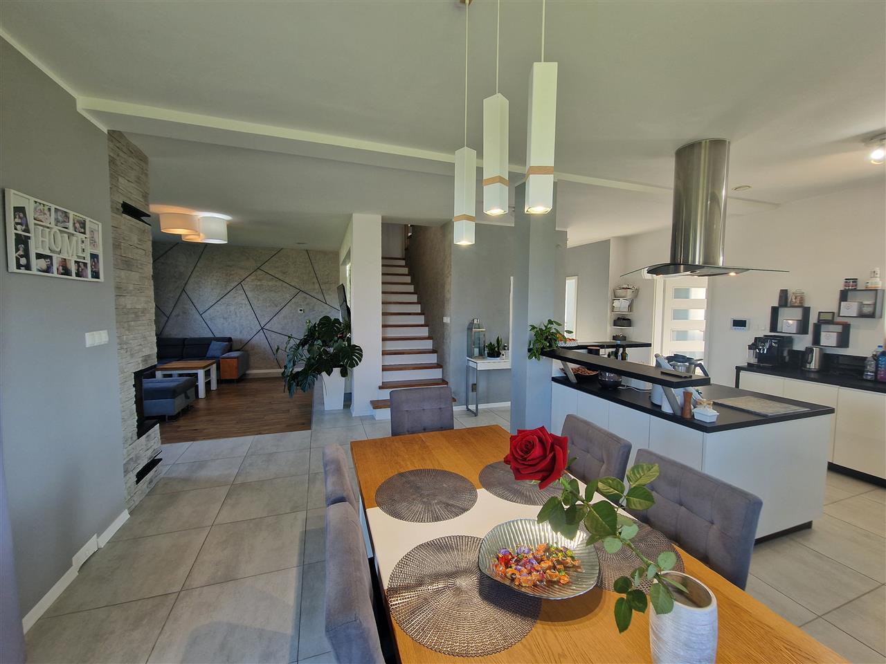 W całym domu ogrzewanie podłogowe oprócz piwnicy i garażu. Ogrzewanie piecem na biopaliwo z zasobnikiem ( pelet / ekogroszek/ ruszt awaryjny), dodatkowo kominek z rozprowadzeniem ciepła DGP (wymuszony obieg ciepłego powietrza) po poszczególnych pokojach, na górze pokój dziecięcy, sypialnia oraz salon. Należy zwrócić uwagę na niskie koszty utrzymania całej nieruchomości zarówno w okresie letnim, jak i zimowym. Latem grzanie wody grzałką z fotowoltaiki .Na działce zainstalowano10 paneli o mocy 5KW. Zainstalowany system rekuperacji + GWC ( Gruntowy wymiennik Ciepła) z możliwością podłączenia klimatyzacji. Odkurzacz centralny. Cena nieruchomości wraz z pełnym wyposażeniem jak na zdjęciach wraz z kosiarką autonomiczną oraz I-robotem. Wszystkie sprzęty sterowane z telefonu - aplikacja Smart Dom. Dodatkowo funkcja zasilania awaryjnego domu - agregat prądotwórczy 3 KW z podłączeniem do nieruchomości jest idealnym rozwiązaniem w przypadku awarii prądu. Na ścianach tynki cementowe wapienne + gładź. Na podłodze na parterze gres, na piętrze panele. Schody podświetlane, solidne drewniane dębowe (klepka) z ciekawą i oryginalną strukturą na ścianach. Możliwość zamontowania rolet zewnętrznych dzięki rozprowadzonej elektryce pod elewacją. Ocieplenie budynku styropianem 20cm, okna trzyszybowe, parapety dębowe (klepka), w piwnicy styropian - Styrodur. Polbruk świeżo wykończony - wrzesień 2024r. Prace zagospodarowania terenu planowane na wiosnę 2025r w tym rozbudowa tarasu rekreacyjnego pod basen i altanę.