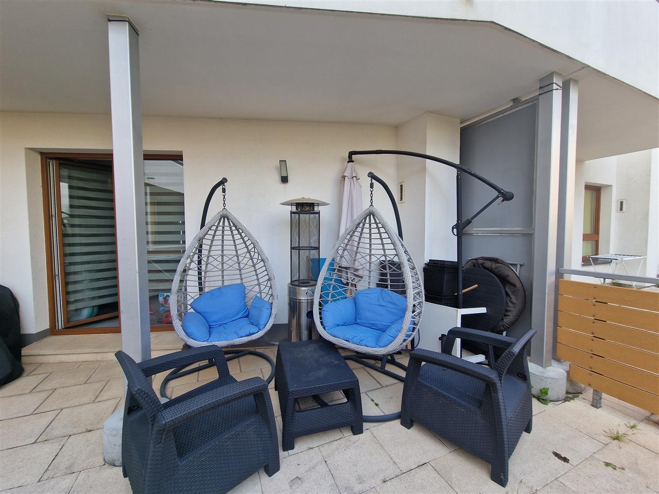Przestronny salon połączony z aneksem kuchennym z pełnym wyposażeniem AGD (kuchenka indukcyjna, okap, piekarnik) z którego mamy wyjście na przestronny taras (36,13m2).Teren ogrodzony, całkowicie odizolowany od ulicy połączony z placem zabaw. Łazienka z kabiną prysznicową oraz wc, garderoba oraz sypialnia. Do mieszkania przynależy również miejsce postojowe zewnętrzne dodatkowo płatne 20.000zł z bramą na pilota.